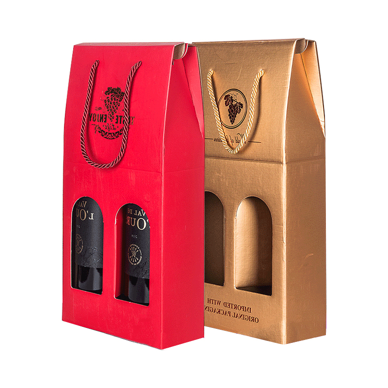Product Name : Custom Luxury Corrugated Paper Gift Box Double Wine Box With Handle